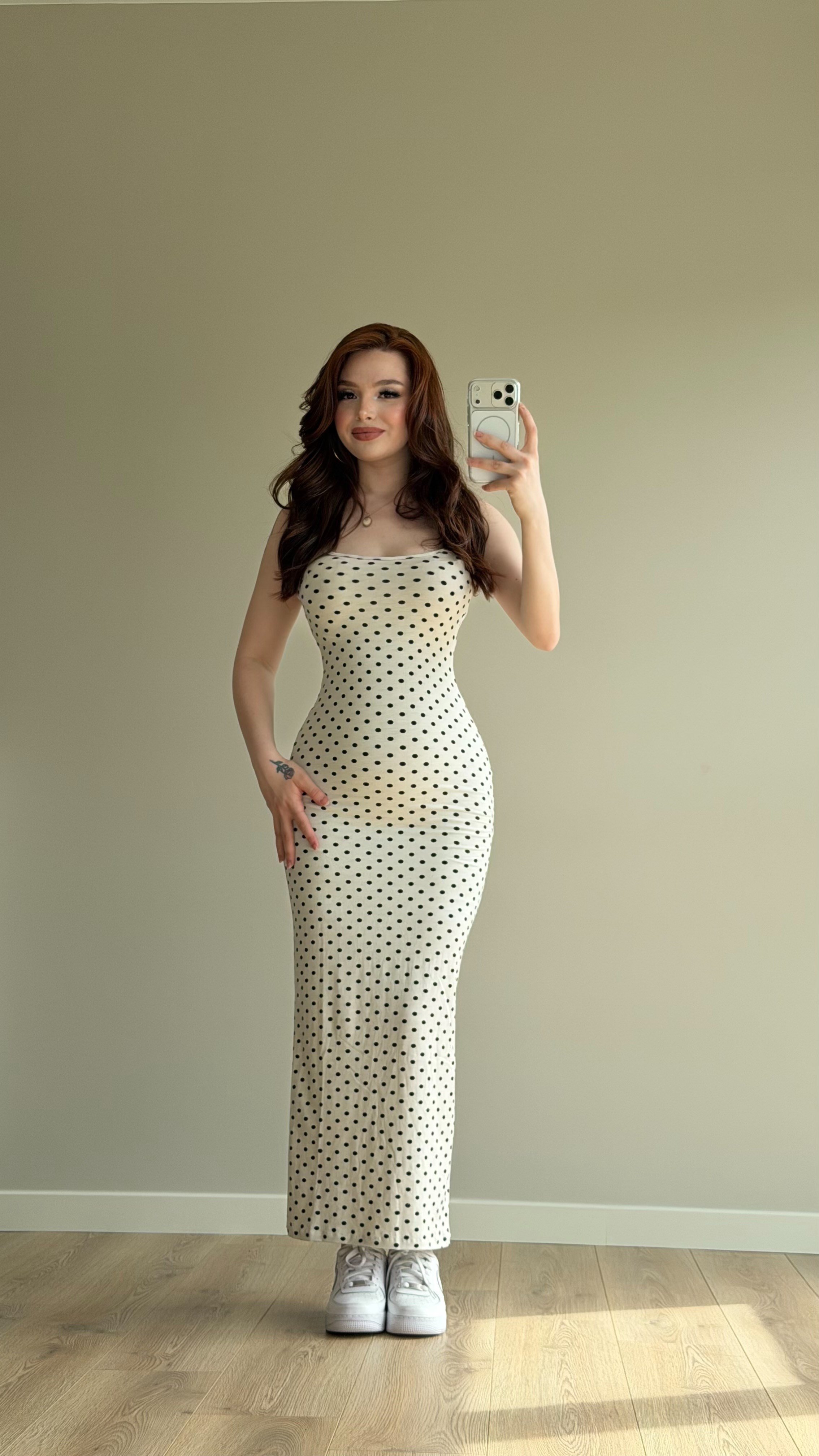 İp Askılı Puantiyeli Basıc Elbise Beyaz (114785)