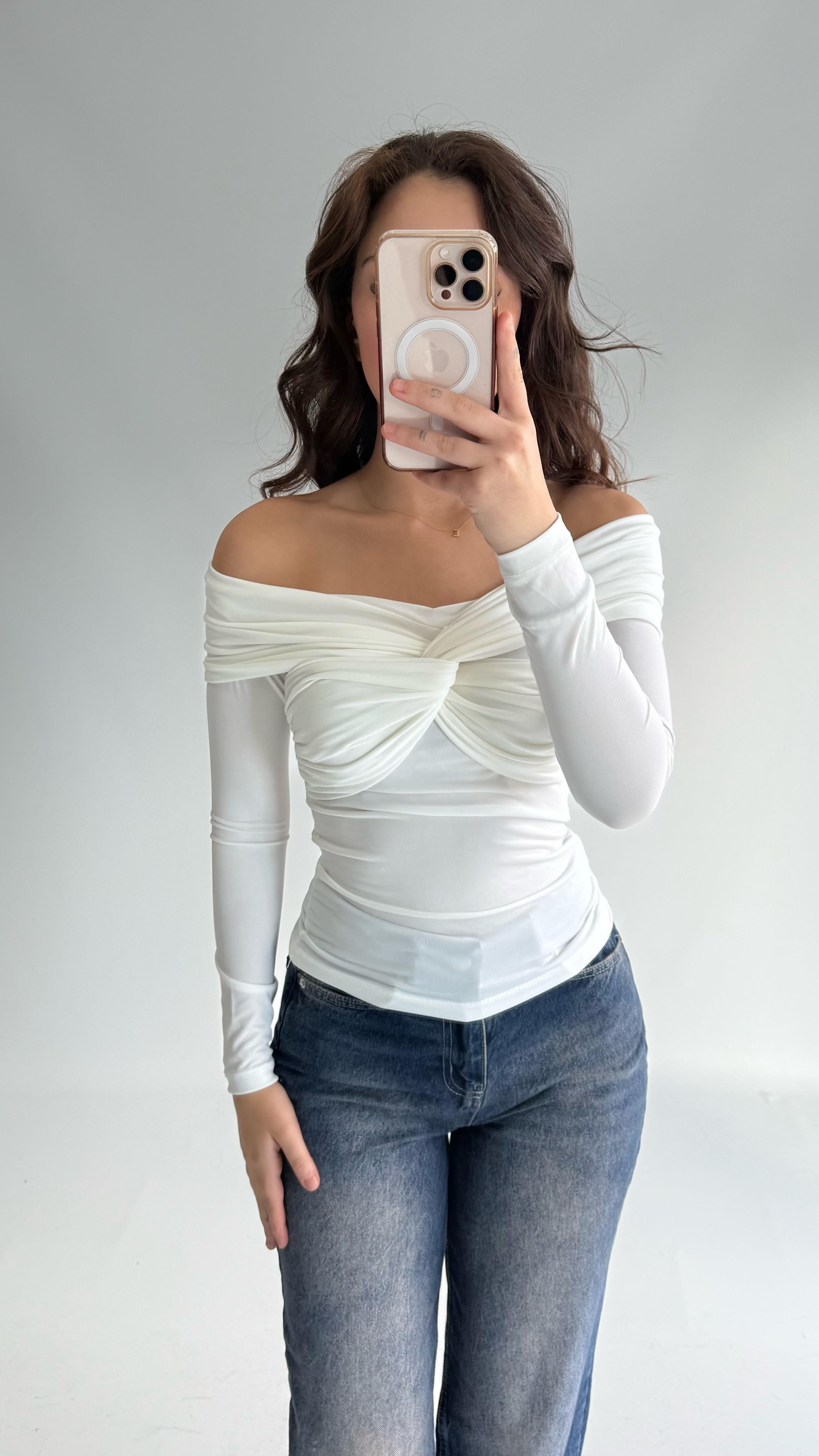 Sandy Önü Burgulu Madonna Bluz Beyaz
