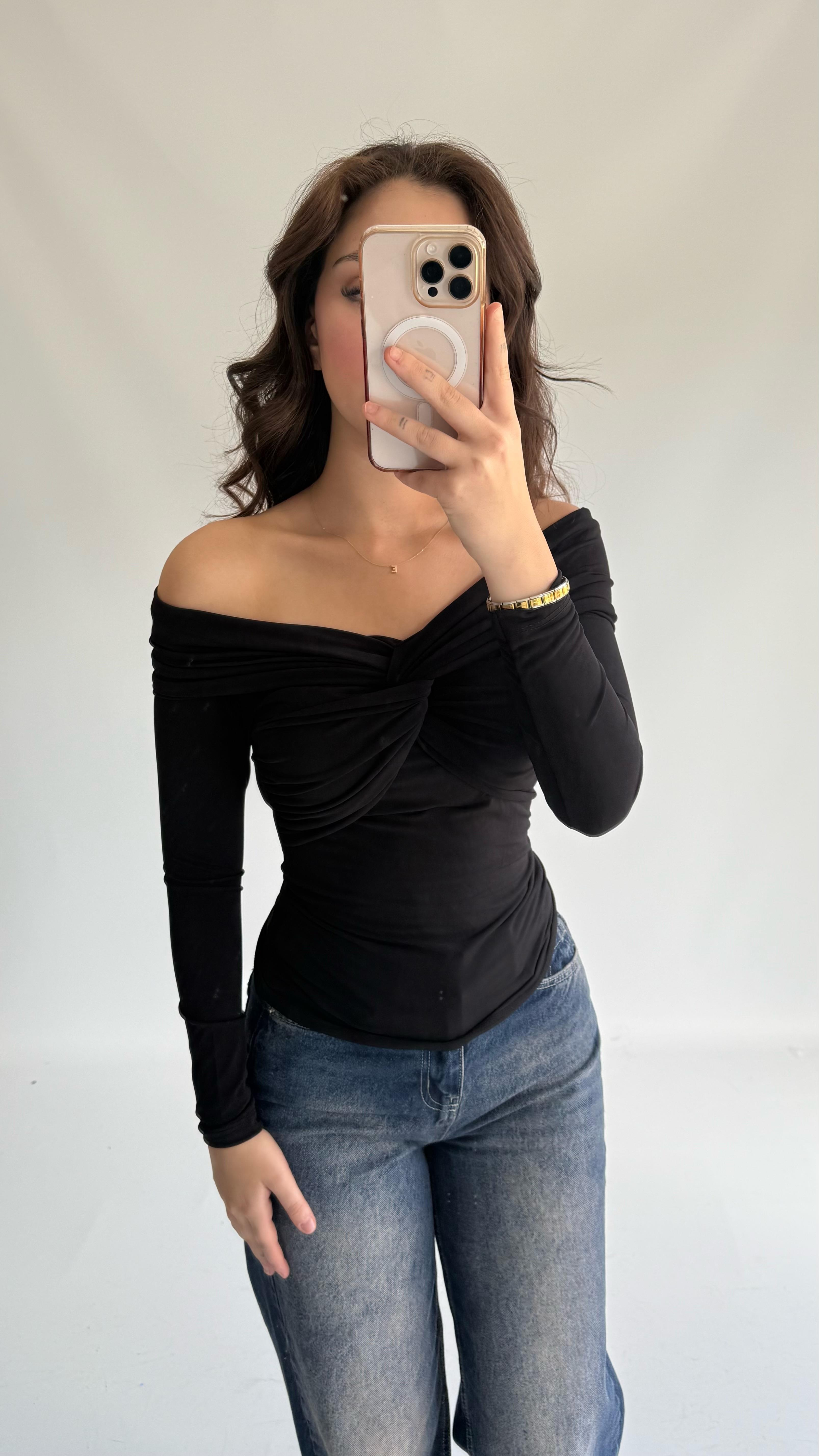 Sandy Önü Burgulu Madonna Bluz Siyah