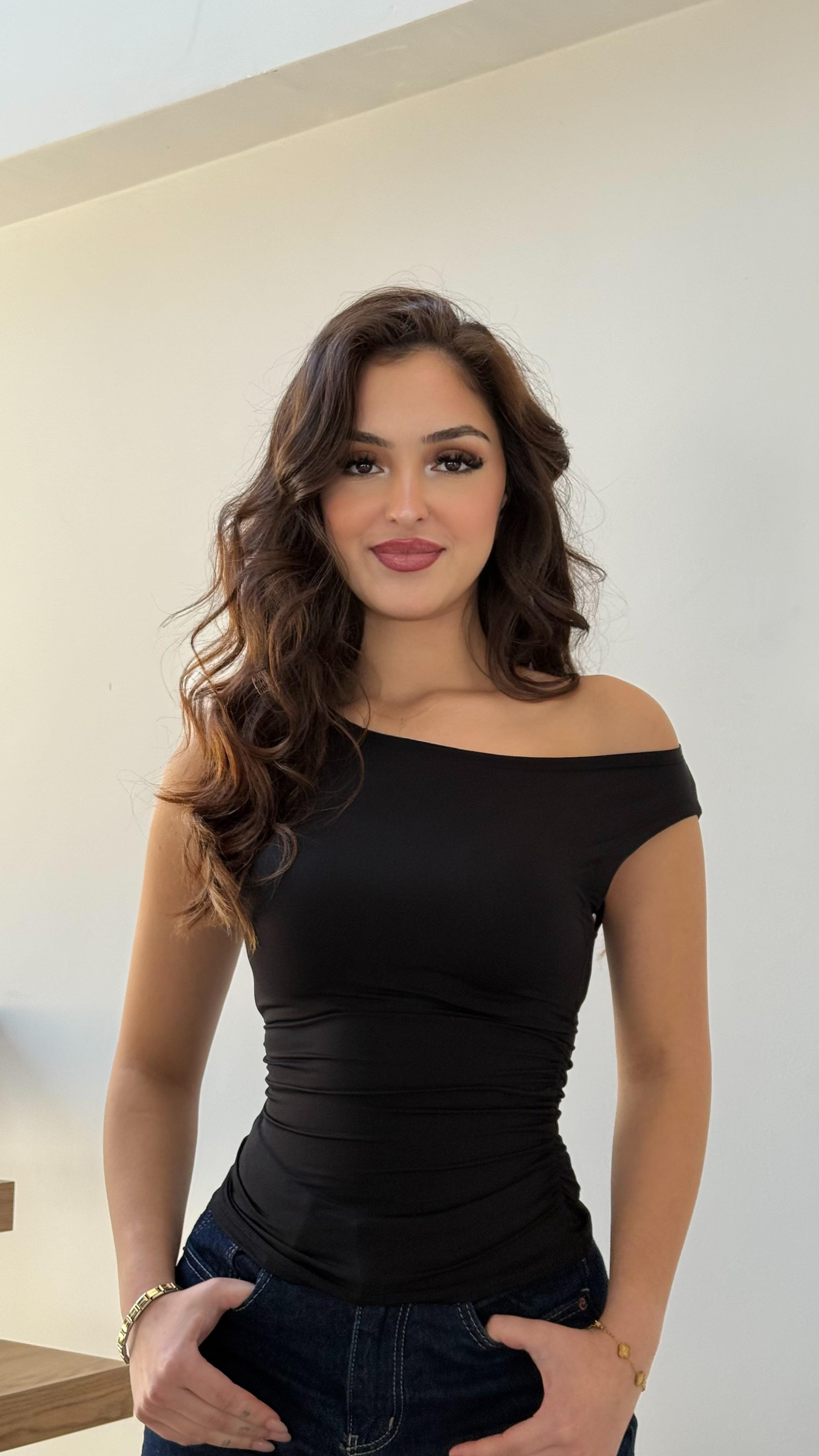 Sıfır Kol Yandan Büzgülü Bluz Siyah