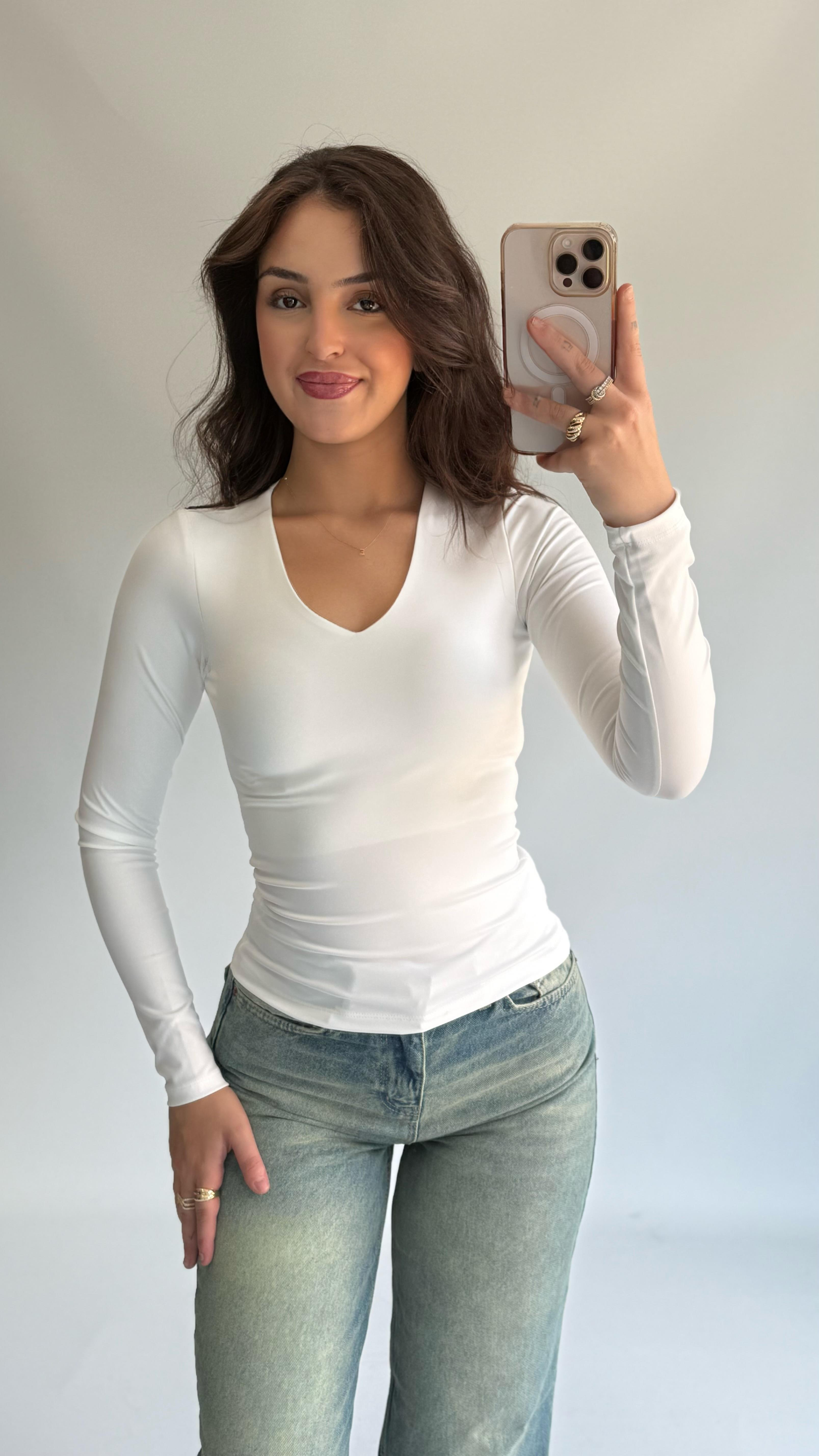 V Yaka Dalgıç Bluz Beyaz